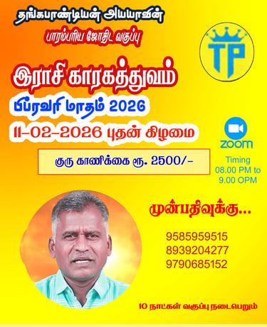 Who ever doesn't know TAMIL wants have consultation with Thangapandi Ayya and translation in ENGLISH, TELUGU OR IN KANNADA Charges will be Rs 5000 per horoscope