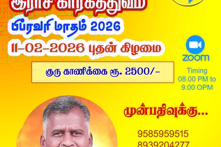 ஜோதிடம், எண்கணிதம், வாஸ்து, வகுப்புகள் நடைபெறும்