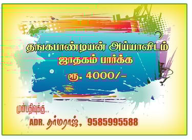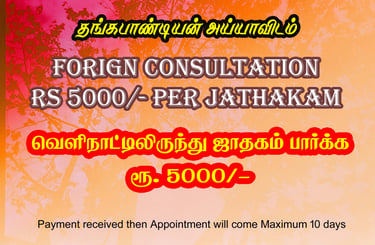 Who ever doesn't know TAMIL wants have consultation with Thangapandi Ayya and translation in ENGLISH, TELUGU OR IN KANNADA Charges will be Rs 5000 per horoscope