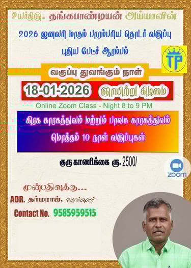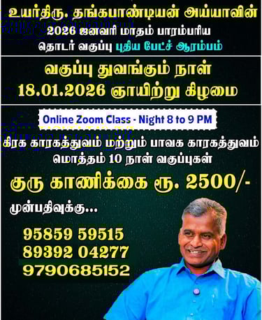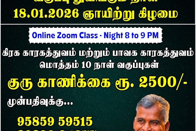 ஜோதிடம், எண்கணிதம், வாஸ்து, வகுப்புகள் நடைபெறும்